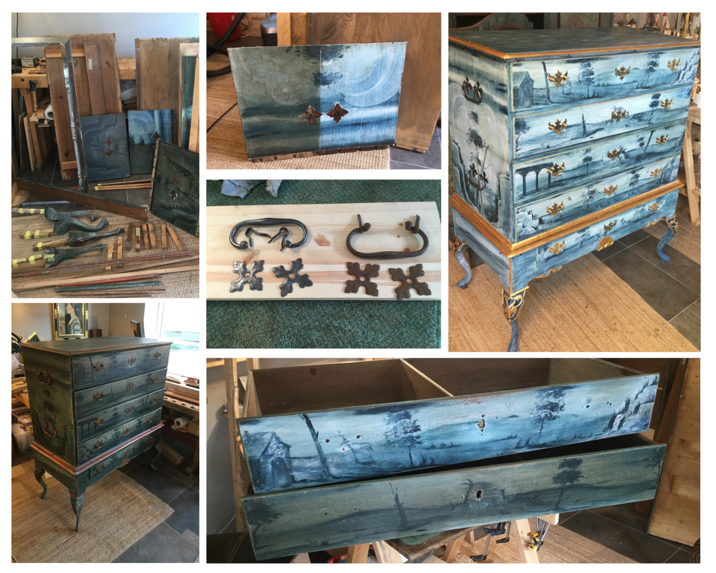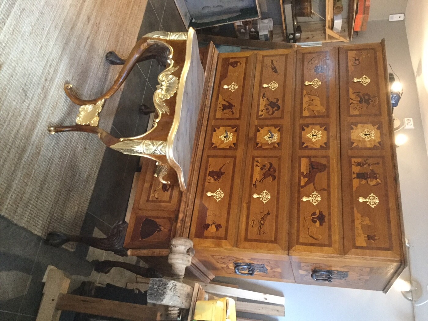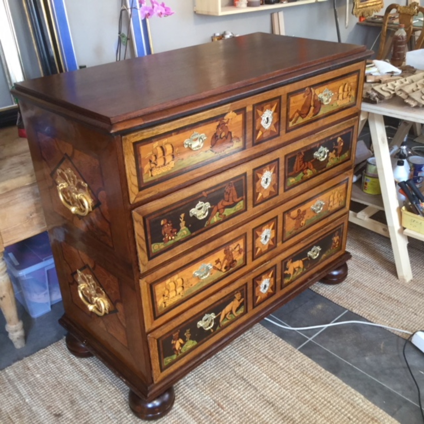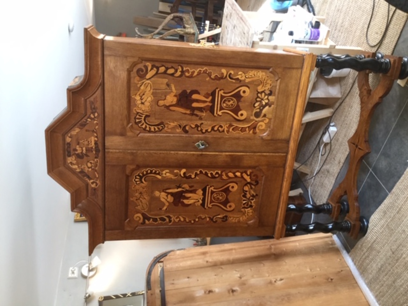 Grimstad Møbelrestaurering & forgylling har kunder fra hele Sørlandet og Oslo-området. Vi restaurerer antikke møbler og gjenstander og forgyller malerirammer. Vi utfører også intarsia-arbeid. Her ser du noen bilder fra vårt arbeid. Klikk på bildet, så blir det større.